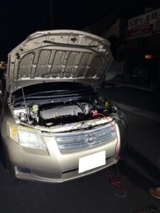 この度は「数日間お車に乗らなかったところ、エンジンがかからない」とのお問い合わせをいただき、迅速に現場へ出動いたしました。現地にて車両状況を丁寧に確認したところ、ライトやメーターは点灯するもののセルの回りが弱く、電圧測定の結果バッテリー上がりと判明。専用機材による安全なジャンピング作業を実施し、エンジン始動および充電状態の点検まで確実に対応いたしました。近年のお車は電装品が多く、短期間でも使用状況やバッテリーの劣化具合によっては電圧が低下するケースがございます。当社では突然のトラブルにも迅速対応できる体制を整えており、経験豊富なスタッフが現場で的確に診断・復旧作業を行っております。単なる始動だけでなく、今後安心してお乗りいただくためのアドバイスも丁寧にご案内しております。今回はお客様ご負担での作業となりましたが、スピード対応と確実な復旧にご満足いただけました。急なバッテリー上がりやエンジントラブルの際は、ぜひ当社へお任せください。迅速・丁寧・安心価格で、皆様のカーライフを全力でサポートいたします。