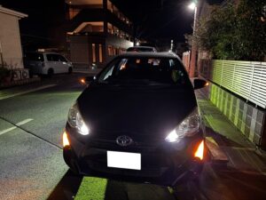 お客様より「走行中にパンクしてしまったが、車載の修理キットもなく対応できない。しかも営業時間外でどうしていいかわからない」とのご連絡をいただき、当社スタッフが迅速に現場へ急行いたしました。夜間・営業時間外の突然のトラブルは不安も大きくなりがちですが、当社では時間帯を問わず対応可能な体制を整えており、安心してご依頼いただけます。