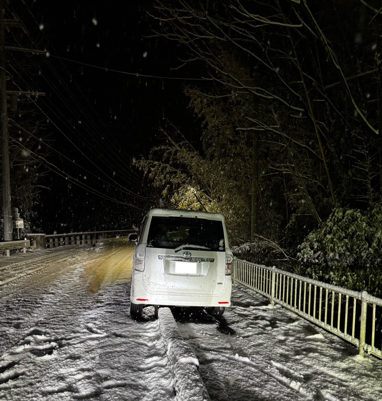 お客様より「ノーマルタイヤで走行中、雪でスリップしてしまい、そのまま縁石に乗り上げて動けなくなってしまった」とのご連絡をいただき、当社スタッフが迅速に現場へ急行いたしました。現地は積雪と路面凍結が重なり非常に滑りやすい状況で、タイヤが空転しやすく、無理に動かそうとすると車両へのダメージが拡大する恐れがありました。